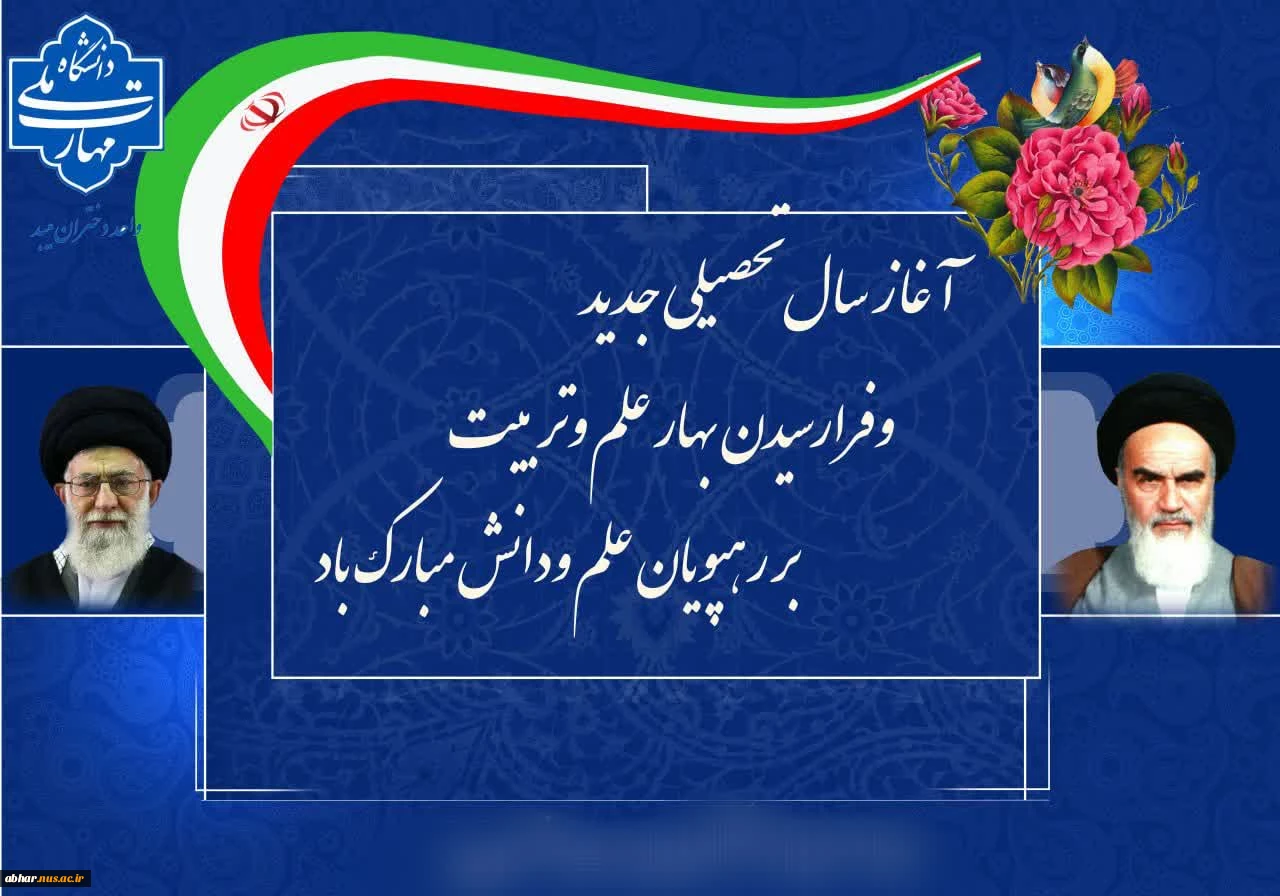 بار دیگر فصل مهر از راه رسید و صحیفه نورانی دانش با انگشت تکاپو و تلاش دانشجویان و صاحبان کسب علم و کمال ورق خورد و ملائک بال خود را برای حضور آنان گسترانید. آغاز سال تحصیلی جدید و شروع دلنشین درس و دانشگاه را به دانشجویان عزیز به ویژه دانشجویان جدید الورود، صمیمانه تبریک عرض نموده .....